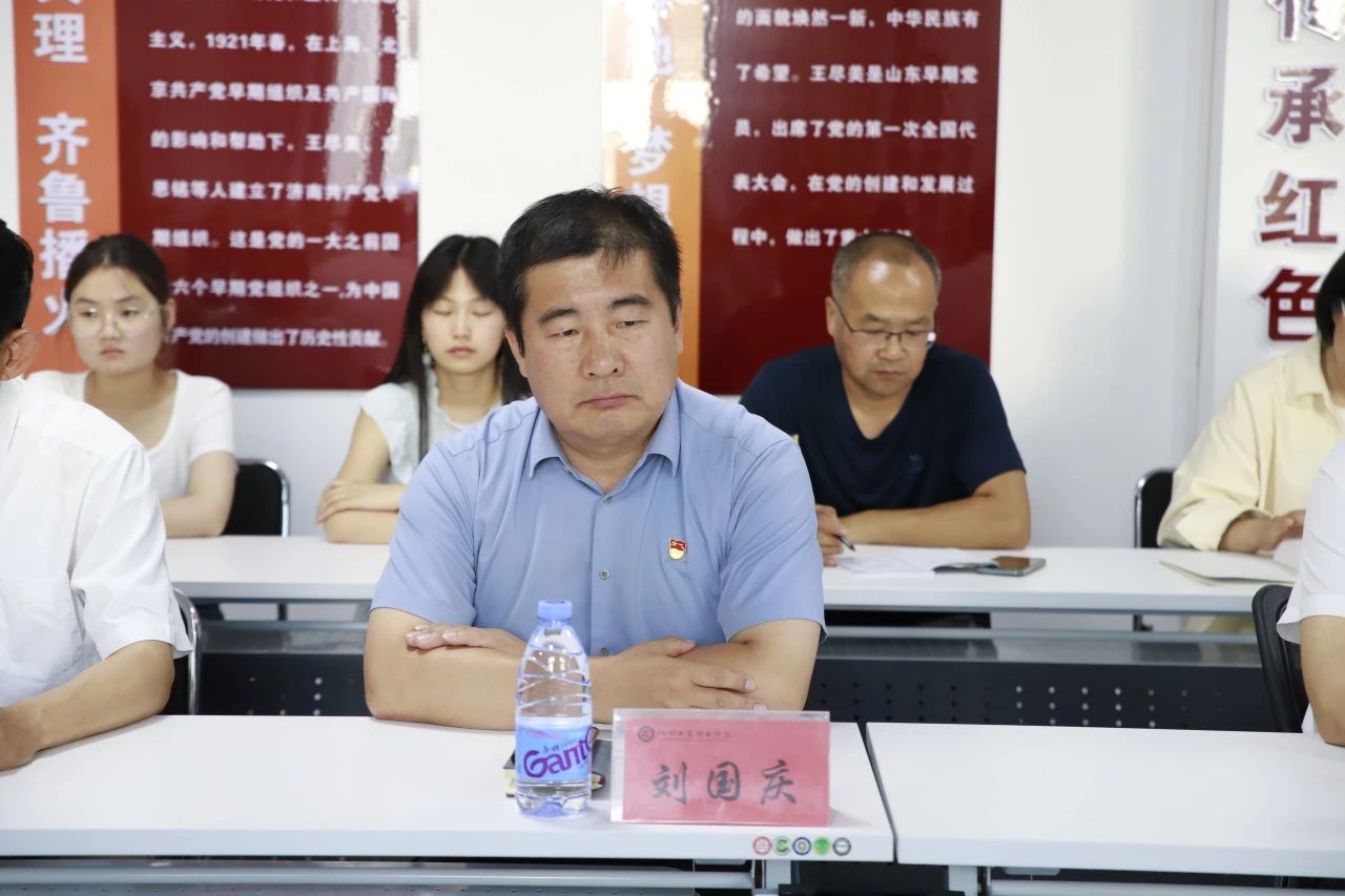 5月28日下午,中共一大代表王尽美嫡孙、诸城王尽美研究会副会长、我校名誉院长王军在尽美文化研究院与马克思主义学院师生代表进行座谈交流。诸城王尽美研究会秘书长李海涛和诸城市音协主席李玉蕾陪同。党委书记葛国文,常务副书记、执行校长郑志松,副书记、副校长刘国庆等校领导及相关部门负责人参加活动。
