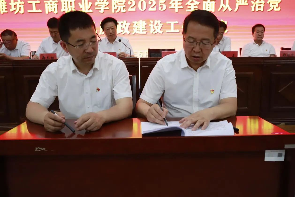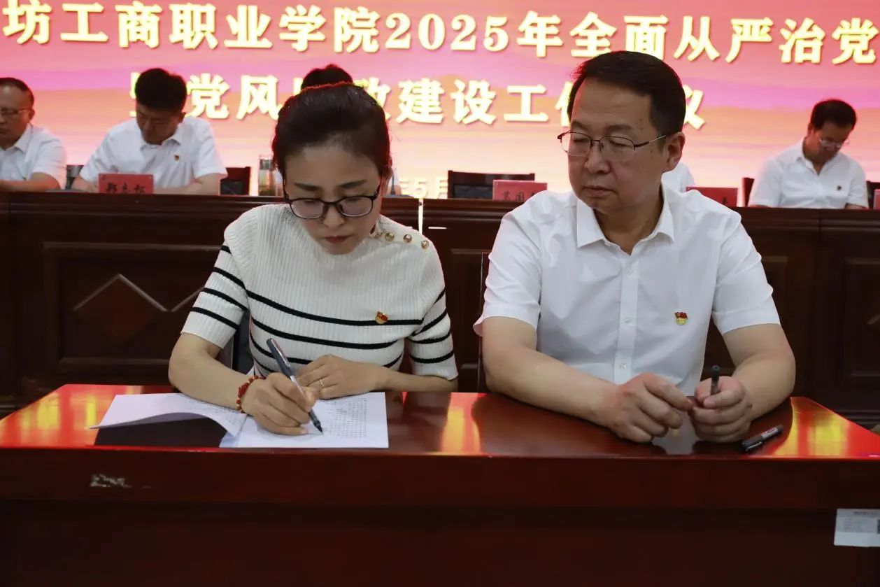 5月29日,潍坊工商职业学院召开2025年全面从严治党暨党风廉政建设工作会议。校长张绍秋,党委书记葛国文,党委常务副书记、执行校长、纪委书记郑志松等校领导及全体中层干部、专职辅导员和后勤集团中层及以上干部参会。