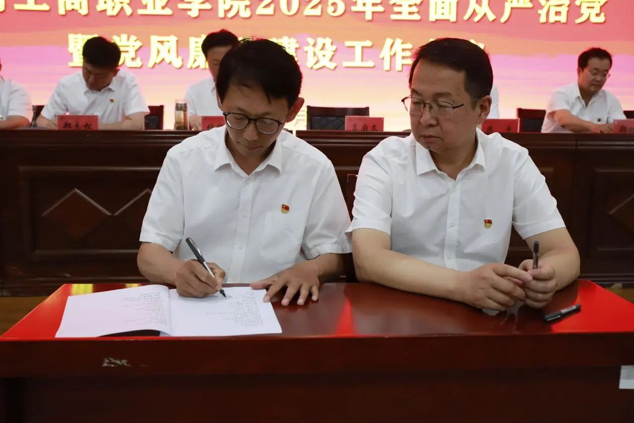 会议期间,举行了党风廉政建设责任书签订仪式,党委书记葛国文与各党支部书记及处室单位负责人现场签订责任书,进一步压紧压实全面从严治党主体责任和监督责任,督促各级干部知责明责、履责尽责。