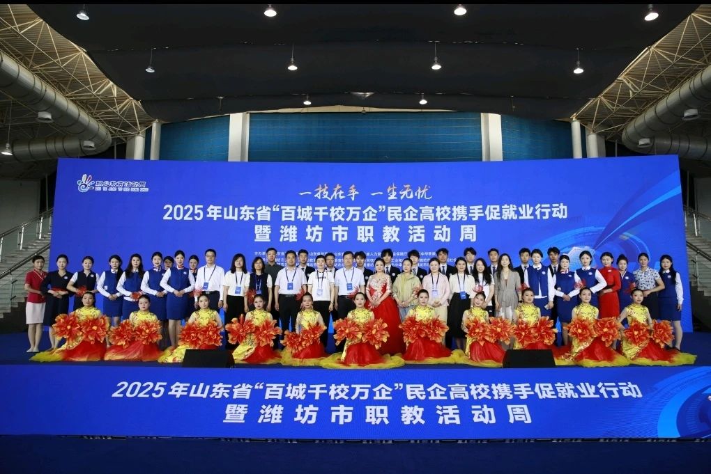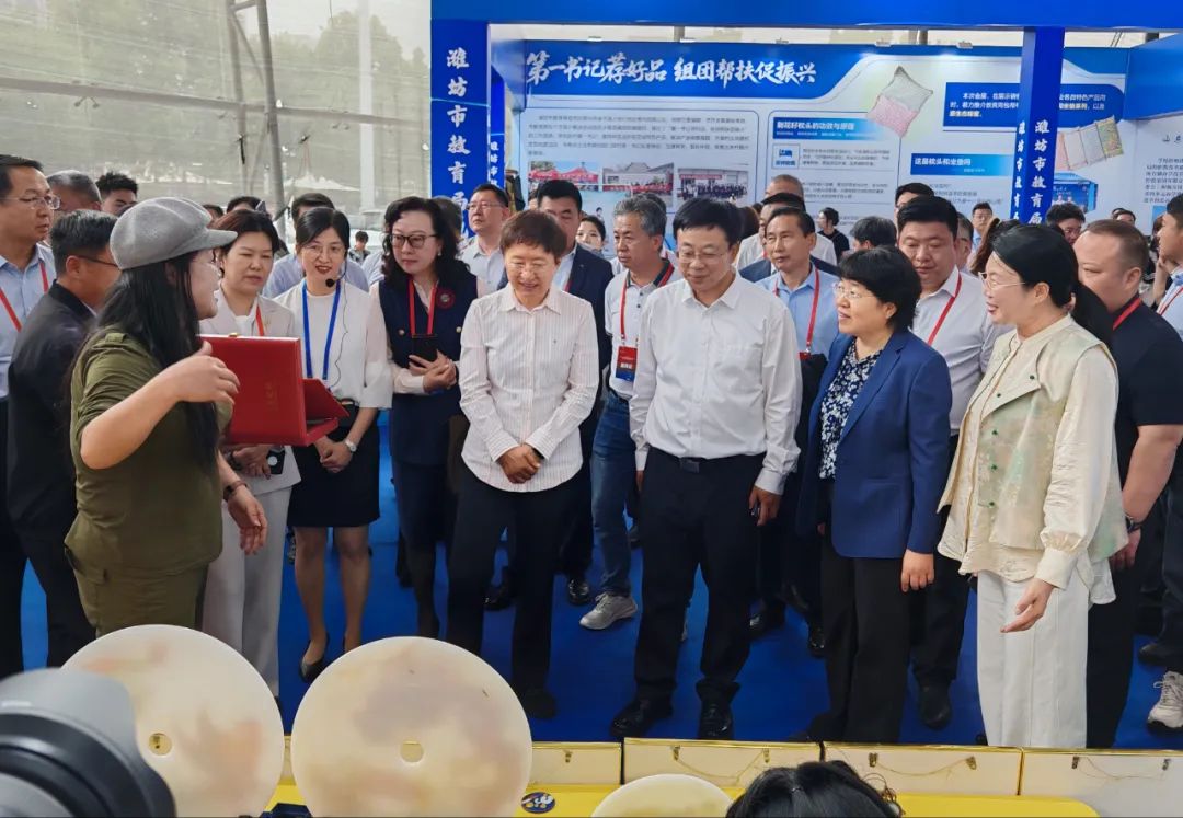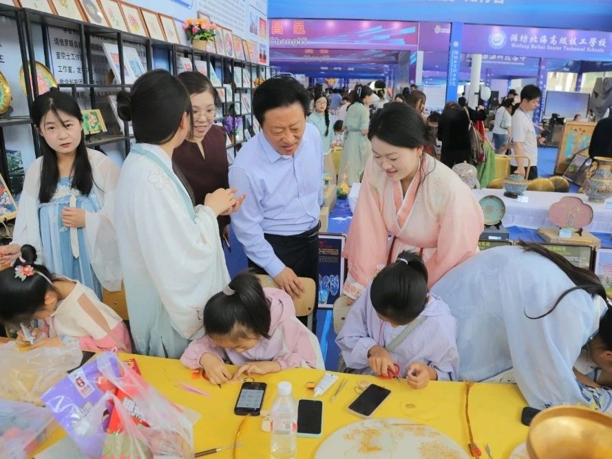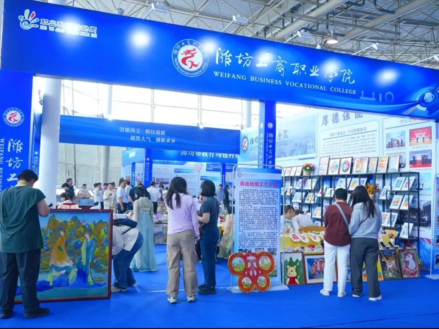 5月23日,2025年山东省 “百城千校万企” 民企高校携手促就业行动暨潍坊市职教活动周启动仪式在富华国际会展中心盛大开幕。山东省人大常委会副主任、山东省工商联主席(兼)、省总商会会长王随莲,潍坊市委书记刘运,副市长陈端梅等省市领导参观了我校展区。在这次盛会中,我校师生作品受到广泛关注。校长张绍秋,党委书记葛国文等校领导出席活动。